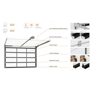 Entdecken Sie die hochwertige motorisierte Querschnitts-Garagentür, die für das anspruchsvolle Klima von Dubai entworfen ist. Seine 60-mm-Isolierplatten und das Triple-Verglasung sorgen für eine außergewöhnliche Wärmedämmung, die eine moderne ästhetische und verbesserte Sicherheit hat. Lieferung und installiertes Maß in Dubai kombiniert Komfort und Leistungsdesign mit einer Garantie von bis zu 5 Jahren.