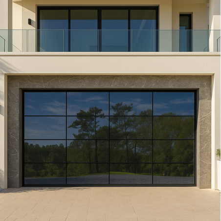 Ce vitrage transforme la porte de garage en élément architectural premium, parfaitement cohérent avec les standards esthétiques internationaux.